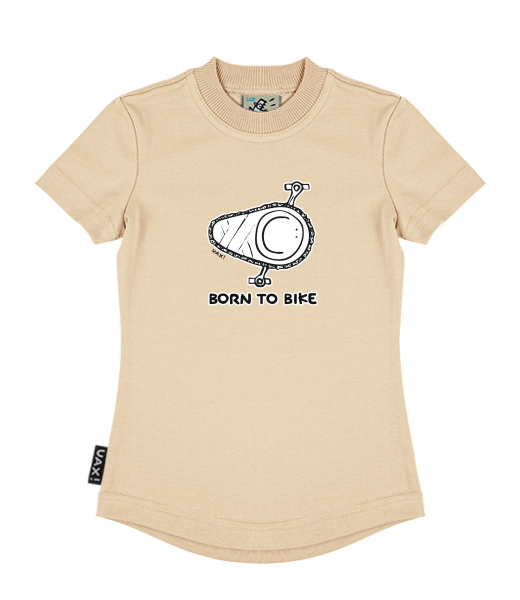 We make sustainable UAX clothing! - hand sewn in the Czech Republic uaxKids uaxAll productsT-shirtsGIRL'S T-SHIRTSdesign 1074 - BORN TO BIKECARAMEL