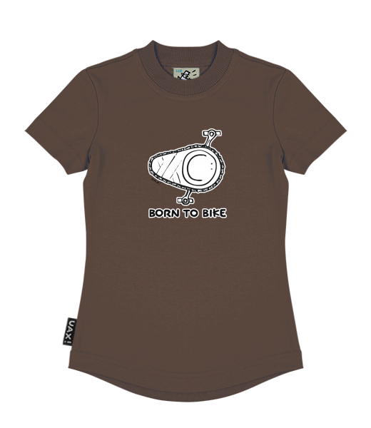 We make sustainable UAX clothing! - hand sewn in the Czech Republic uaxKids uaxAll productsT-shirtsGIRL'S T-SHIRTSdesign 1074 - BORN TO BIKECHESTNUT