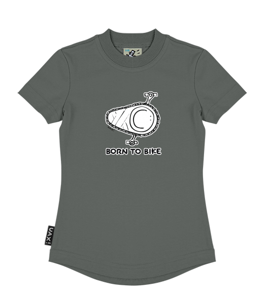 We make sustainable UAX clothing! - hand sewn in the Czech Republic uaxKids uaxAll productsT-shirtsGIRL'S T-SHIRTSdesign 1074 - BORN TO BIKEDARK GRAY