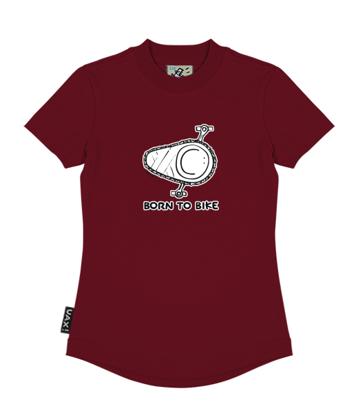 We make sustainable UAX clothing! - hand sewn in the Czech Republic uaxKids uaxAll productsT-shirtsGIRL'S T-SHIRTSdesign 1074 - BORN TO BIKEDARK RED