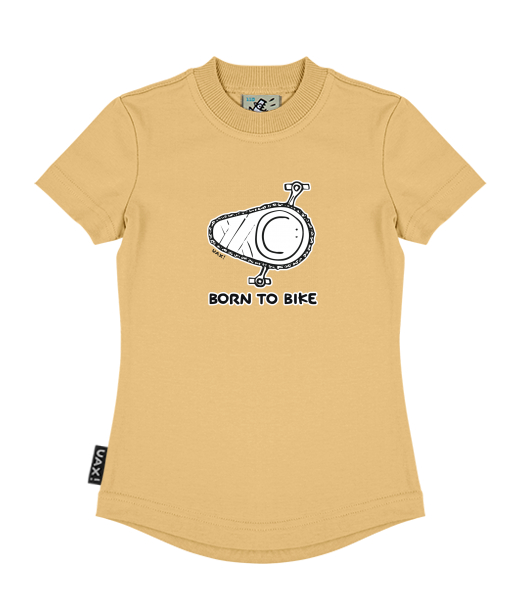 We make sustainable UAX clothing! - hand sewn in the Czech Republic uaxKids uaxAll productsT-shirtsGIRL'S T-SHIRTSdesign 1074 - BORN TO BIKEMUSTARD
