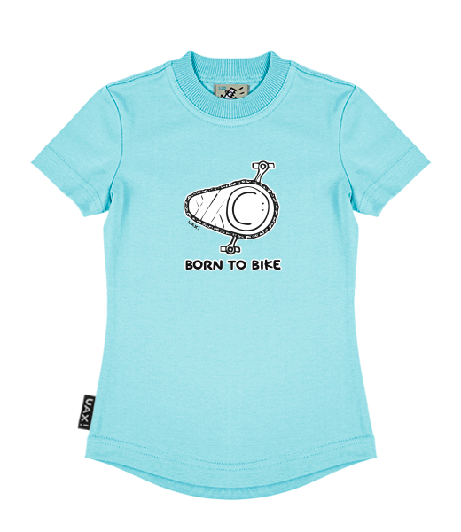 We make sustainable UAX clothing! - hand sewn in the Czech Republic uaxKids uaxAll productsT-shirtsGIRL'S T-SHIRTSdesign 1074 - BORN TO BIKEPASTEL BLUE