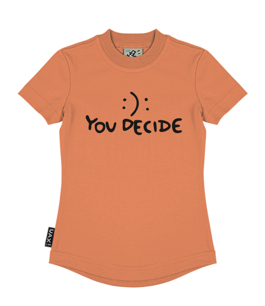 We make sustainable UAX clothing! - hand sewn in the Czech Republic uaxKids uaxAll productsT-shirtsGIRL'S T-SHIRTSdesign 1078 - YOU DECIDEMANDARIAN ORANGE