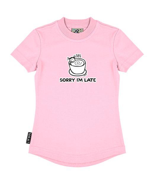 We make sustainable UAX clothing! - hand sewn in the Czech Republic uaxKids uaxAll productsT-shirtsGIRL'S T-SHIRTSdesign 1087 - SORRY IM LATEBABY PINK