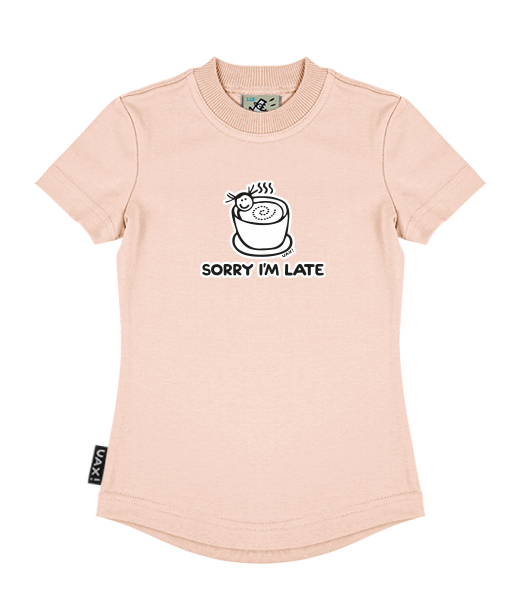 We make sustainable UAX clothing! - hand sewn in the Czech Republic uaxKids uaxAll productsT-shirtsGIRL'S T-SHIRTSdesign 1087 - SORRY IM LATECAPPUCINO