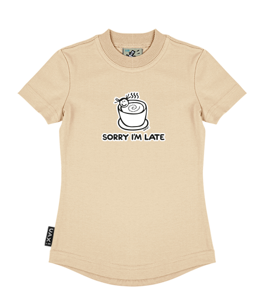 We make sustainable UAX clothing! - hand sewn in the Czech Republic uaxKids uaxAll productsT-shirtsGIRL'S T-SHIRTSdesign 1087 - SORRY IM LATECARAMEL