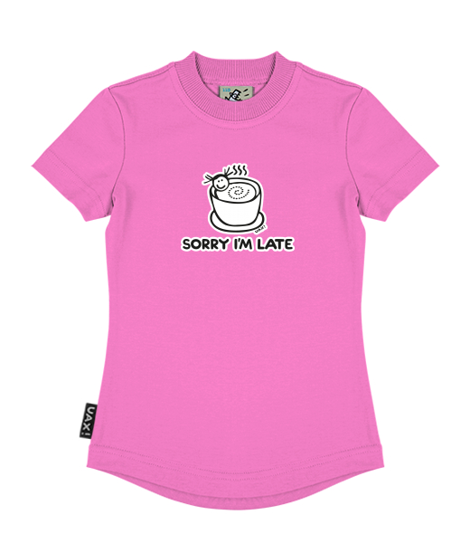 We make sustainable UAX clothing! - hand sewn in the Czech Republic uaxKids uaxAll productsT-shirtsGIRL'S T-SHIRTSdesign 1087 - SORRY IM LATECLASSIC PINK