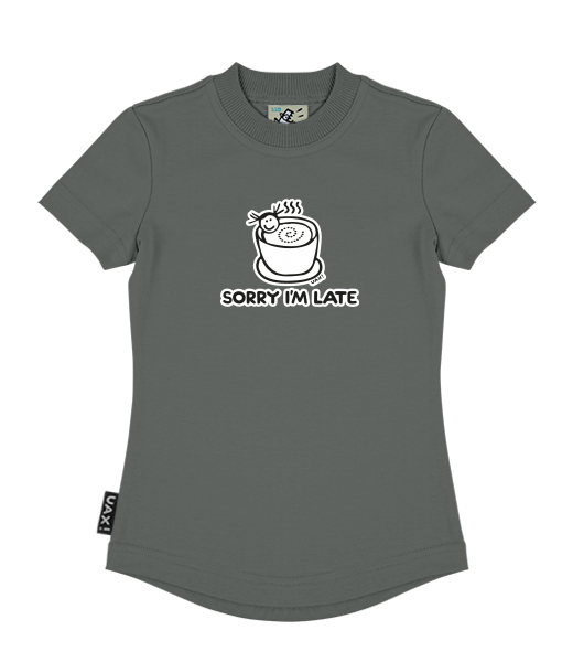 We make sustainable UAX clothing! - hand sewn in the Czech Republic uaxKids uaxAll productsT-shirtsGIRL'S T-SHIRTSdesign 1087 - SORRY IM LATEDARK GRAY