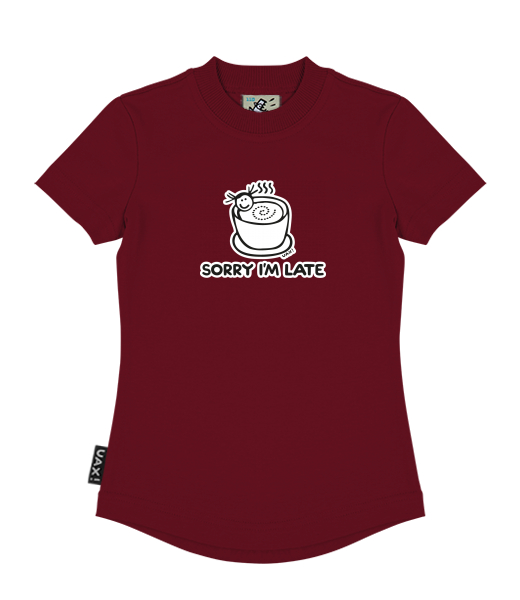 We make sustainable UAX clothing! - hand sewn in the Czech Republic uaxKids uaxAll productsT-shirtsGIRL'S T-SHIRTSdesign 1087 - SORRY IM LATEDARK RED