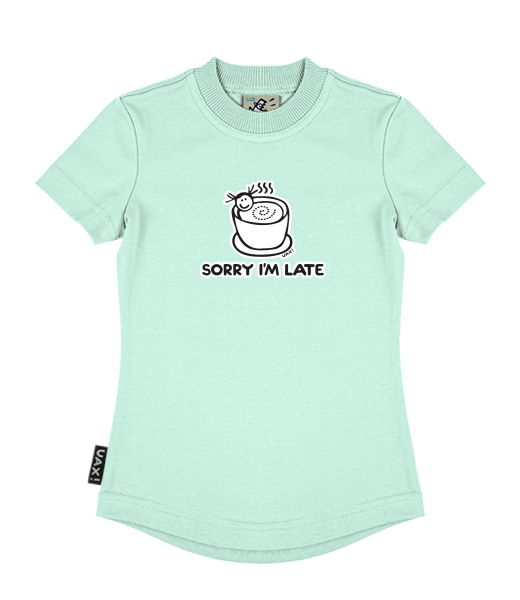 We make sustainable UAX clothing! - hand sewn in the Czech Republic uaxKids uaxAll productsT-shirtsGIRL'S T-SHIRTSdesign 1087 - SORRY IM LATEMINT