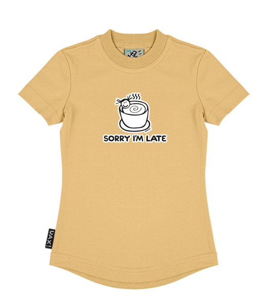 We make sustainable UAX clothing! - hand sewn in the Czech Republic uaxKids uaxAll productsT-shirtsGIRL'S T-SHIRTSdesign 1087 - SORRY IM LATEMUSTARD