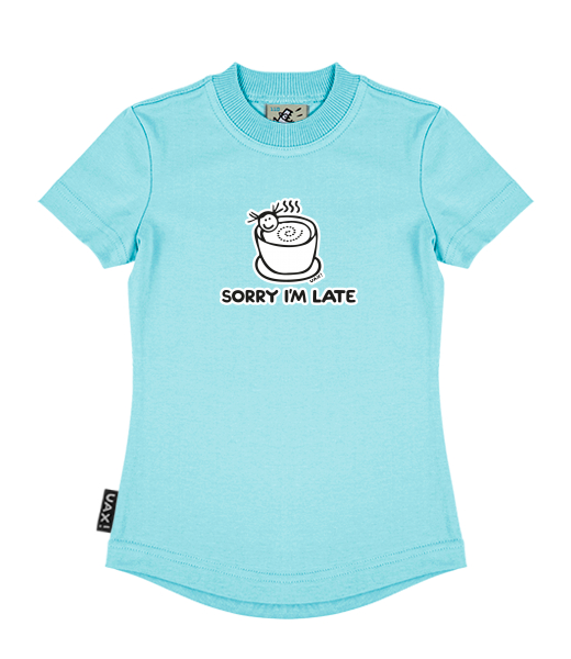 We make sustainable UAX clothing! - hand sewn in the Czech Republic uaxKids uaxAll productsT-shirtsGIRL'S T-SHIRTSdesign 1087 - SORRY IM LATEPASTEL BLUE