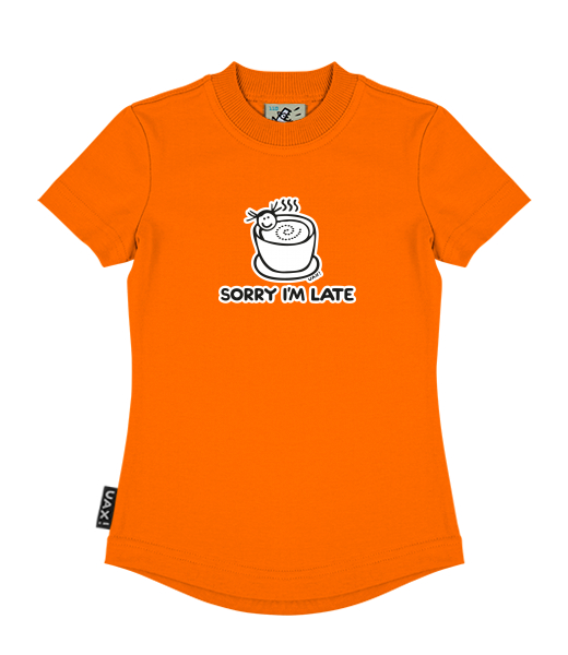 We make sustainable UAX clothing! - hand sewn in the Czech Republic uaxKids uaxAll productsT-shirtsGIRL'S T-SHIRTSdesign 1087 - SORRY IM LATESIGNAL ORANGE