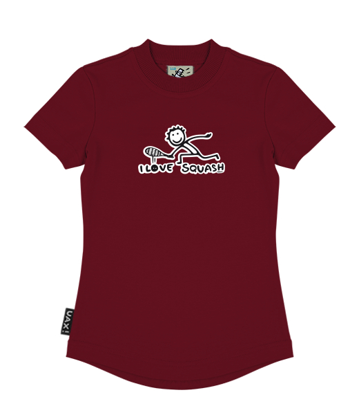 We make sustainable UAX clothing! - hand sewn in the Czech Republic uaxKids uaxAll productsT-shirtsGIRL'S T-SHIRTSdesign 1091 - I LOVE SQUASHDARK RED