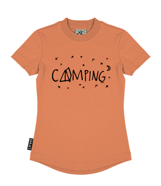 We make sustainable UAX clothing! - hand sewn in the Czech Republic uaxKids uaxAll productsT-shirtsGIRL'S T-SHIRTSdesign 1112 - CAMPINGMANDARIAN ORANGE