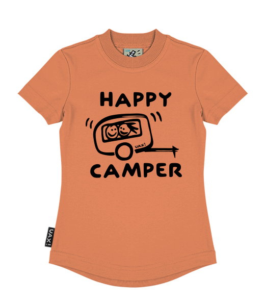 We make sustainable UAX clothing! - hand sewn in the Czech Republic uaxKids uaxAll productsT-shirtsGIRL'S T-SHIRTSdesign 1116 - HAPPY CAMPERMANDARIAN ORANGE