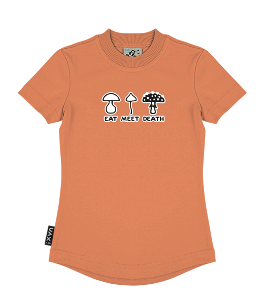 We make sustainable UAX clothing! - hand sewn in the Czech Republic uaxKids uaxAll productsT-shirtsGIRL'S T-SHIRTSdesign 1177 - EAT MEET DEATHMANDARIAN ORANGE