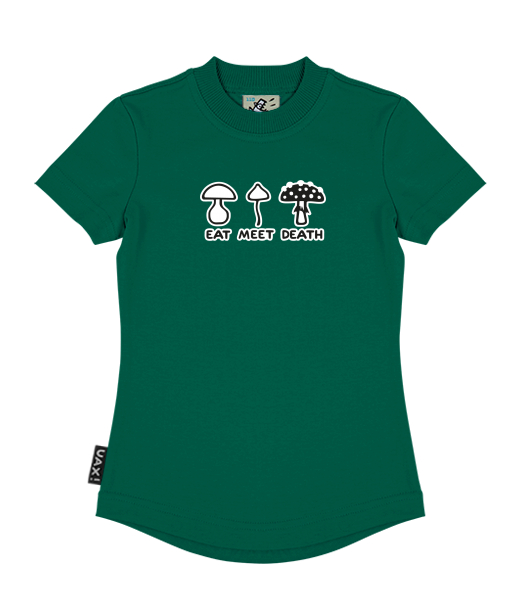 We make sustainable UAX clothing! - hand sewn in the Czech Republic uaxKids uaxAll productsT-shirtsGIRL'S T-SHIRTSdesign 1177 - EAT MEET DEATHUNIVERSITY GREEN