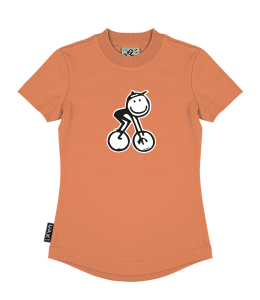 We make sustainable UAX clothing! - hand sewn in the Czech Republic uaxKids uaxAll productsT-shirtsGIRL'S T-SHIRTSdesign 1202 - BIKE MANMANDARIAN ORANGE