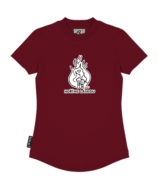We make sustainable UAX clothing! - hand sewn in the Czech Republic uaxKids uaxAll productsT-shirtsGIRL'S T-SHIRTSdesign 1208 - HOŘÍME LÁSKOUDARK RED