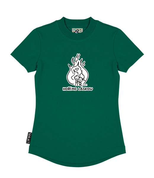 We make sustainable UAX clothing! - hand sewn in the Czech Republic uaxKids uaxAll productsT-shirtsGIRL'S T-SHIRTSdesign 1208 - HOŘÍME LÁSKOUUNIVERSITY GREEN