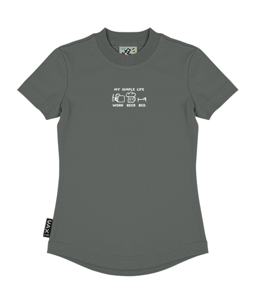 We make sustainable UAX clothing! - hand sewn in the Czech Republic uaxKids uaxAll productsT-shirtsGIRL'S T-SHIRTSdesign 1211 - MY SIMPLE LIFE WORK BEER BEDDARK GRAY