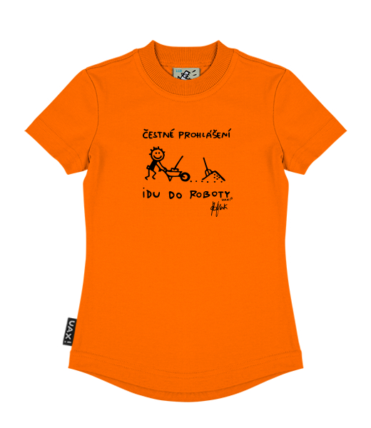 GIRL'S T-SHIRTS UAX! for kid with design 1303 ČESTNÉ PROHLÁŠENÍ IDU DO ROBOTY in color SIGNAL ORANGE