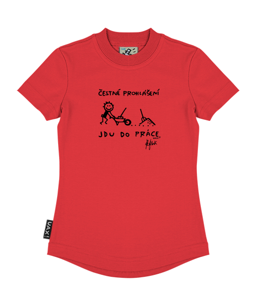 GIRL'S T-SHIRTS UAX! for kid with design 1304 ČESTNÉ PROHLÁŠENÍ JDU DO PRÁCE in color RED