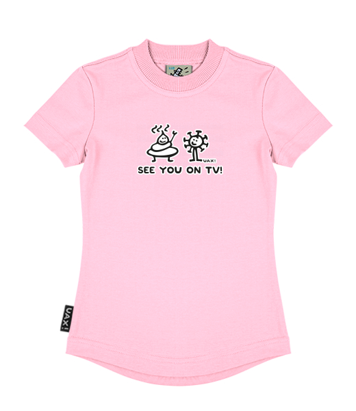 We make sustainable UAX clothing! - hand sewn in the Czech Republic uaxKids uaxAll productsT-shirtsGIRL'S T-SHIRTSdesign 1306 - SEE YOU ON TVBABY PINK