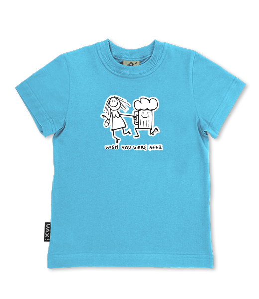 We make sustainable UAX clothing! - hand sewn in the Czech Republic uaxKids uaxAll productsT-shirtsSKRATCHILD T-SHIRTSdesign 1049 - WISH YOU WERE BEERBLUE ATOLL