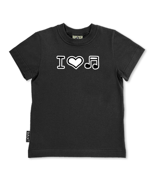 We make sustainable UAX clothing! - hand sewn in the Czech Republic uaxKids uaxAll productsT-shirtsSKRATCHILD T-SHIRTSdesign 1067 - I LOVE MUSICBLACK
