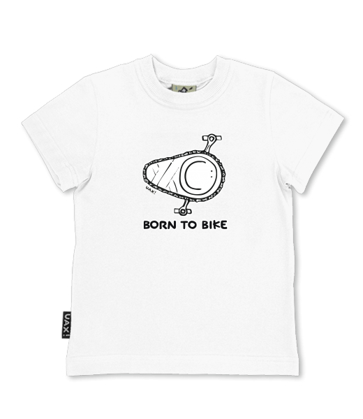 We make sustainable UAX clothing! - hand sewn in the Czech Republic uaxKids uaxAll productsT-shirtsSKRATCHILD T-SHIRTSdesign 1074 - BORN TO BIKEWHITE
