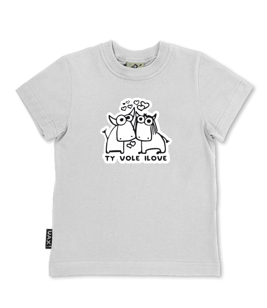 We make sustainable UAX clothing! - hand sewn in the Czech Republic uaxKids uaxAll productsT-shirtsSKRATCHILD T-SHIRTSdesign 1089 - TY VOLE I LOVECEMENT