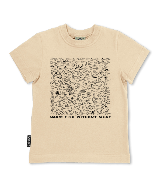 Products of cotton sewn and printed in the Czech Republic under the registered trademark "UAX fish without meat"