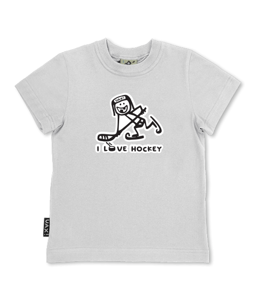 We make sustainable UAX clothing! - hand sewn in the Czech Republic uaxKids uaxAll productsT-shirtsSKRATCHILD T-SHIRTSdesign 1100 - I LOVE HOCKEYCEMENT
