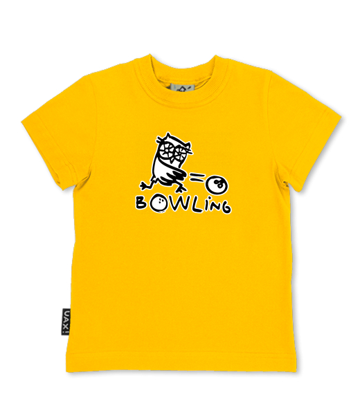 We make sustainable UAX clothing! - hand sewn in the Czech Republic uaxKids uaxAll productsT-shirtsSKRATCHILD T-SHIRTSdesign 1103 - BOWLINGGOLDEN CREAM