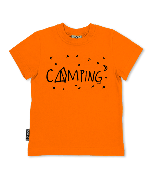 We make sustainable UAX clothing! - hand sewn in the Czech Republic uaxKids uaxAll productsT-shirtsSKRATCHILD T-SHIRTSdesign 1112 - CAMPINGSIGNAL ORANGE