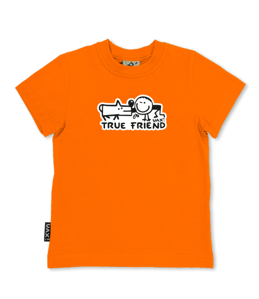 We make sustainable UAX clothing! - hand sewn in the Czech Republic uaxKids uaxAll productsT-shirtsSKRATCHILD T-SHIRTSdesign 1123 - TRUE FRIENDSIGNAL ORANGE