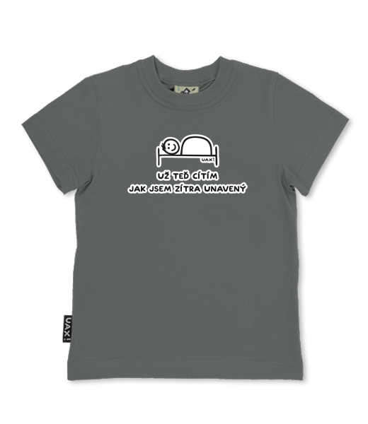 We make sustainable UAX clothing! - hand sewn in the Czech Republic uaxKids uaxAll productsT-shirtsSKRATCHILD T-SHIRTSdesign 1200 - UŽ TEĎ CÍTÍM JAK JSEM ZÍTRA UNAVENÝDARK GRAY