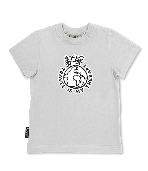 We make sustainable UAX clothing! - hand sewn in the Czech Republic uaxKids uaxAll productsT-shirtsSKRATCHILD T-SHIRTSdesign 1240 - TRAVEL IS MY THERAPYCEMENT