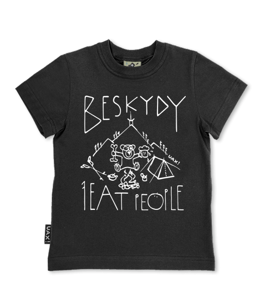 We make sustainable UAX clothing! - hand sewn in the Czech Republic uaxKids uaxAll productsT-shirtsSKRATCHILD T-SHIRTSdesign 1241 - I EAT PEOPLE BESKYDYBLACK