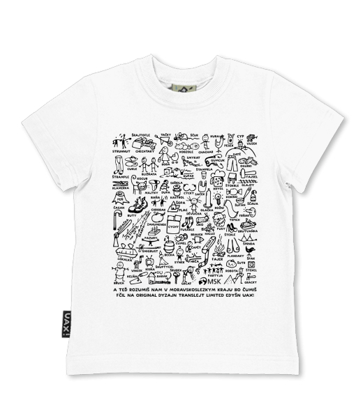 We make sustainable UAX clothing! - hand sewn in the Czech Republic uaxKids uaxAll productsT-shirtsSKRATCHILD T-SHIRTSdesign 1260 - TRANSLEJT LIMITED EDYŠN 2.0 MSKWHITE