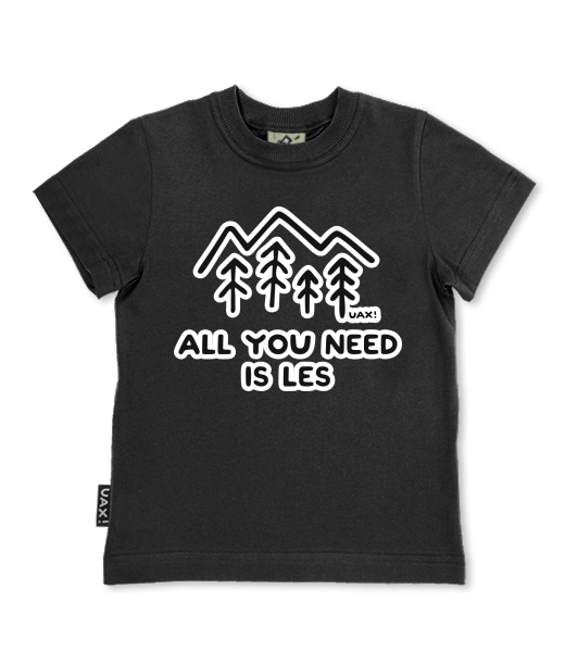 We make sustainable UAX clothing! - hand sewn in the Czech Republic uaxKids uaxAll productsT-shirtsSKRATCHILD T-SHIRTSdesign 1279 - ALL YOU NEED IS LESBLACK