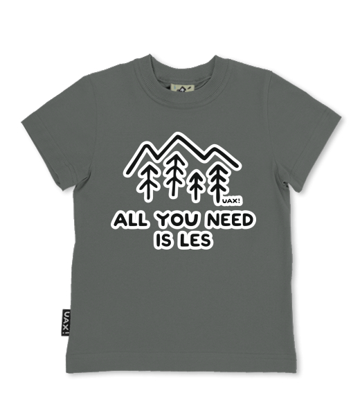 We make sustainable UAX clothing! - hand sewn in the Czech Republic uaxKids uaxAll productsT-shirtsSKRATCHILD T-SHIRTSdesign 1279 - ALL YOU NEED IS LESDARK GRAY