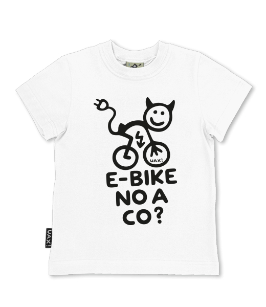We make sustainable UAX clothing! - hand sewn in the Czech Republic uaxKids uaxAll productsT-shirtsSKRATCHILD T-SHIRTSdesign 1291 - E-BIKE NO A CO?WHITE