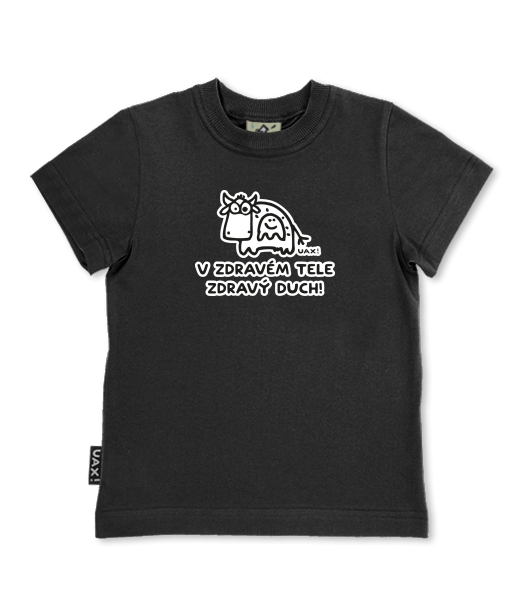 We make sustainable UAX clothing! - hand sewn in the Czech Republic uaxKids uaxAll productsT-shirtsSKRATCHILD T-SHIRTSdesign 1309 - V ZDRAVÉM TELE ZDRAVÝ DUCHBLACK