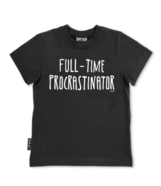 We make sustainable UAX clothing! - hand sewn in the Czech Republic uaxKids uaxAll productsT-shirtsSKRATCHILD T-SHIRTSdesign 1334 - FULL-TIME PROCRASTINATORBLACK