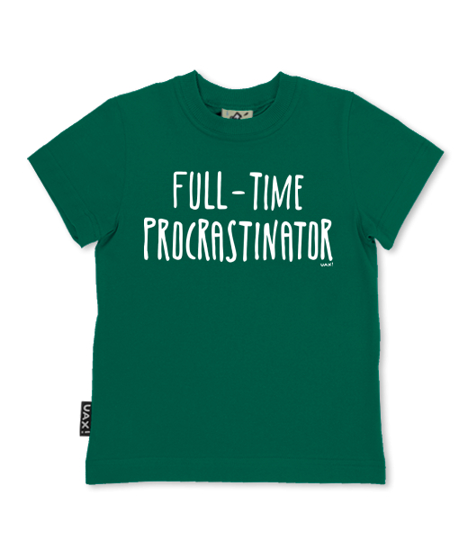 We make sustainable UAX clothing! - hand sewn in the Czech Republic uaxKids uaxAll productsT-shirtsSKRATCHILD T-SHIRTSdesign 1334 - FULL-TIME PROCRASTINATORUNIVERSITY GREEN