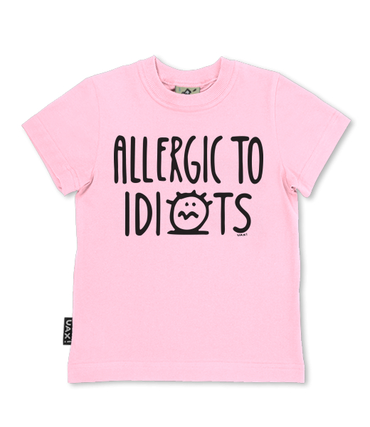 We make sustainable UAX clothing! - hand sewn in the Czech Republic uaxKids uaxAll productsT-shirtsSKRATCHILD T-SHIRTSdesign 1354 - ALLERGIC TO IDIOTSBABY PINK