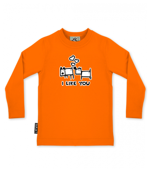 We make sustainable UAX clothing! - hand sewn in the Czech Republic uaxKids uaxAll productsT-shirtsT-SHIRTS SKRATCHILD+design 1066 - I LIKE YOUSIGNAL ORANGE